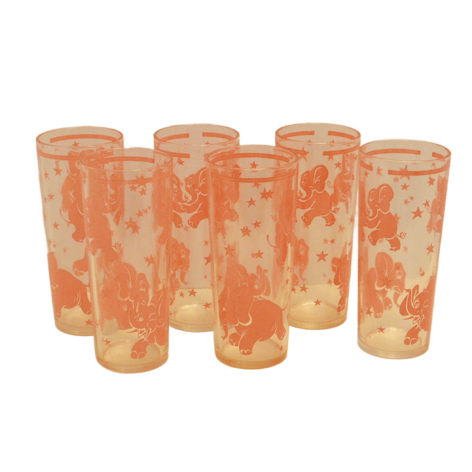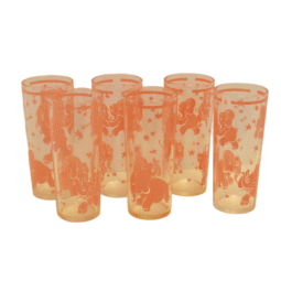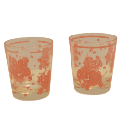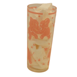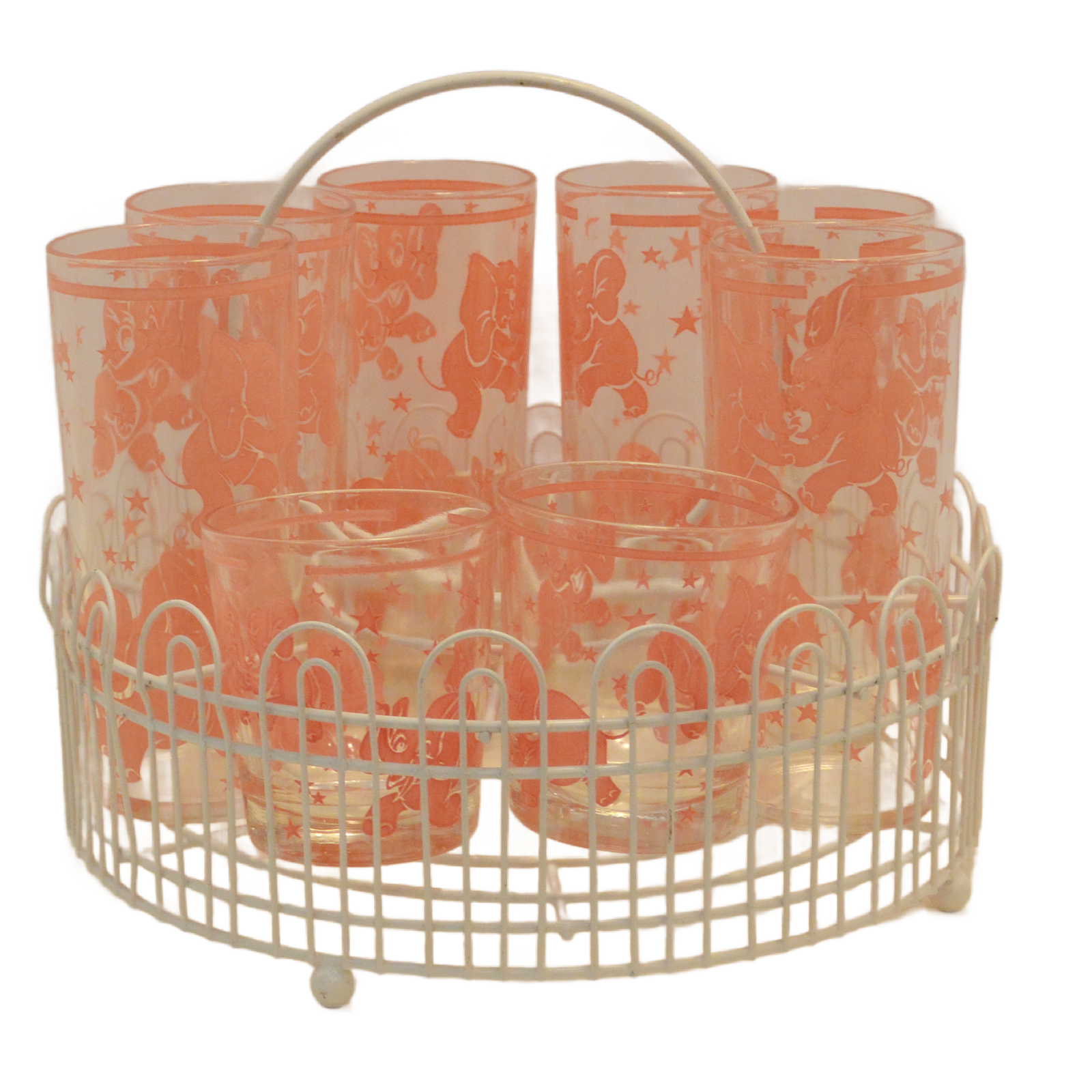 This fabulous glass set is adorned with dancing pink elephants!