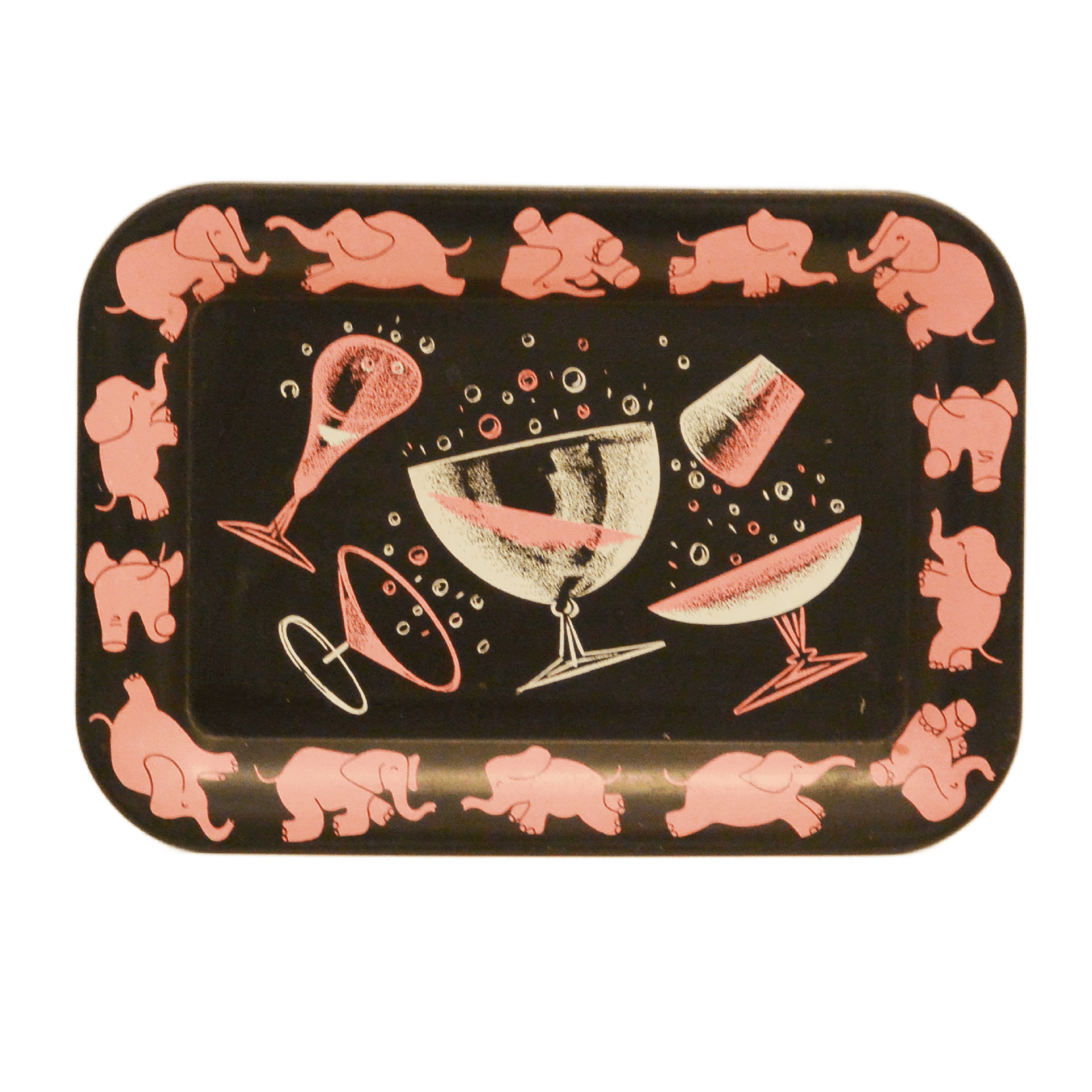 Pink Elephant Glass Set Rack & Tip Tray c.1940’s